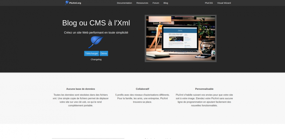 PluXml CMS léger CMS sans base de données blog PHP flat-file CMS hébergement écologique communauté PluXml plugins PluXml thèmes PluXml blog informatique blog lifestylePrésentation du CMS PluXml